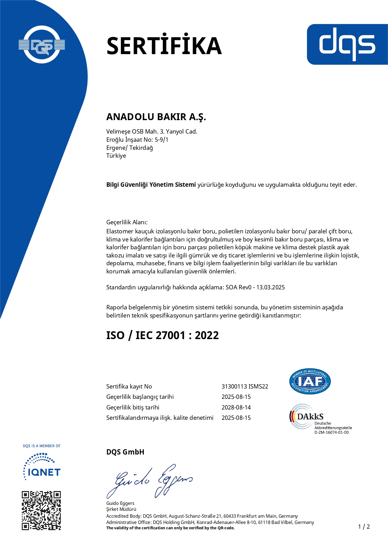 ERA 2200-0003 Kalite Yönetim Sertifikası Çevre Yönetim Sistemi Sertifikası İş Sağlığı Güvenliği Yönetim Sertifikası Bilgi Güvenliği Yönetim Sistem Sertifikası M1 Sertifika UL-723 RAPOR
